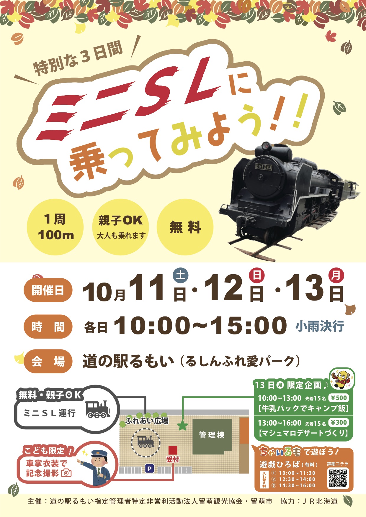【10/11・12・13】道の駅るもいミニSL運行のお知らせ