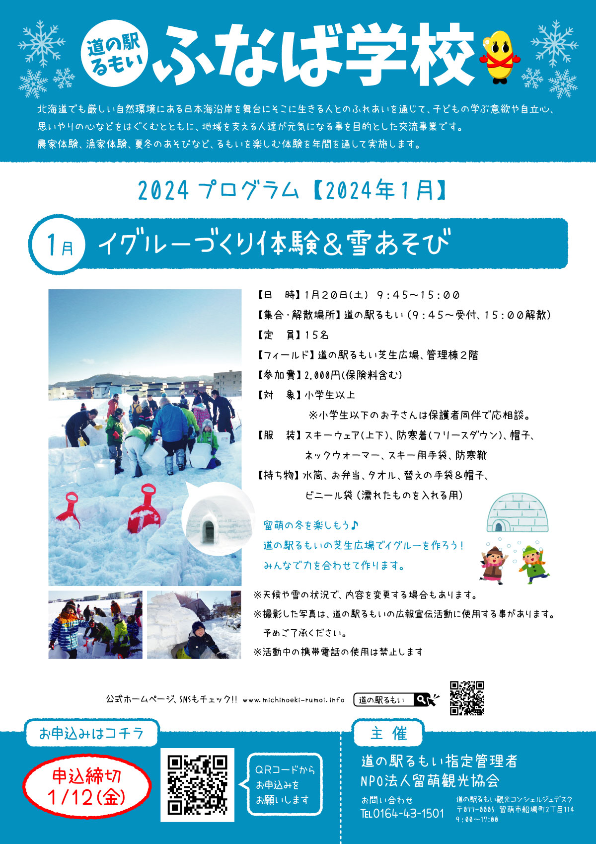 留萌の冬を楽しもう♪ 道の駅るもいの芝生広場でイグルーを作ろう! みんなで力を合わせて作ります。