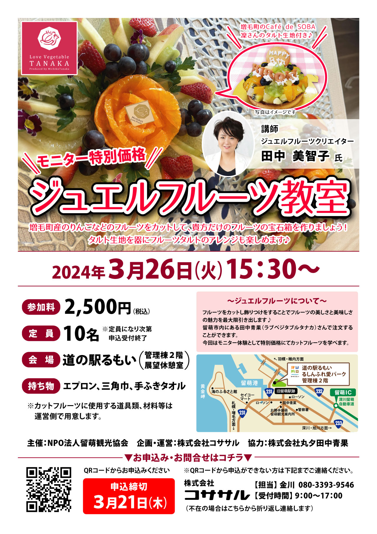 増毛町産のりんごなどのフルーツをカットして、貴方だけのフルーツの宝石箱を作りましょう! タルト生地を器にフルーツタルトのアレンジも楽しめます♪ 【2024/3/26開催★要事前申込み】