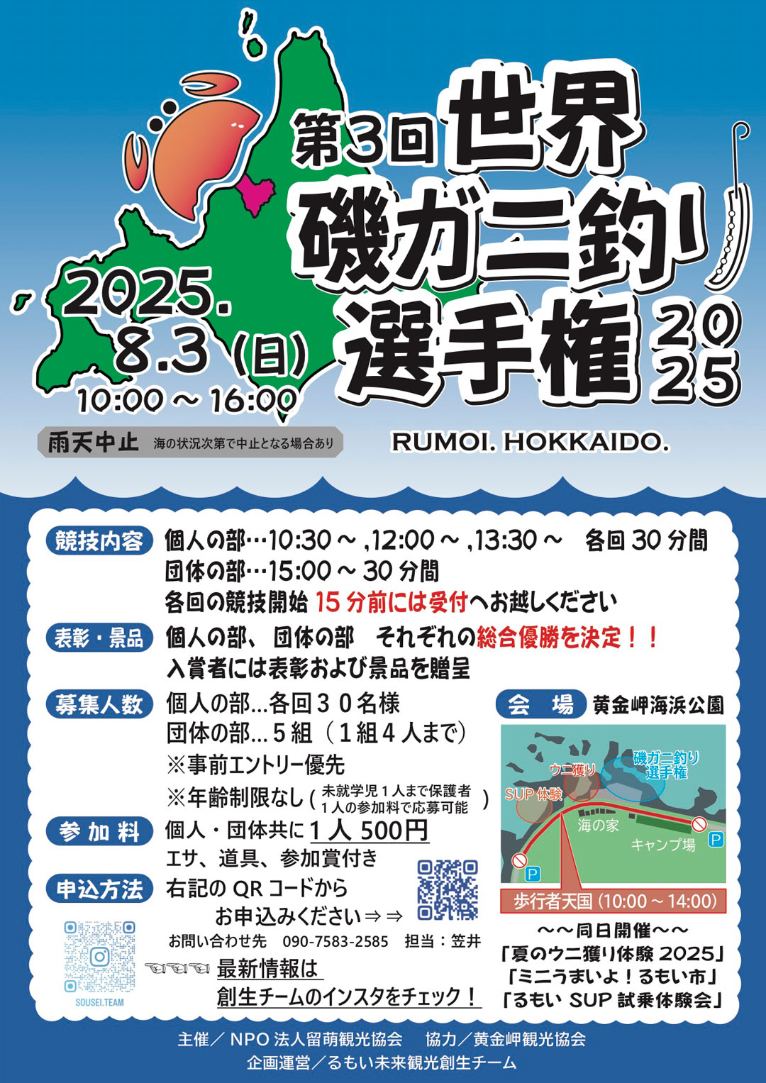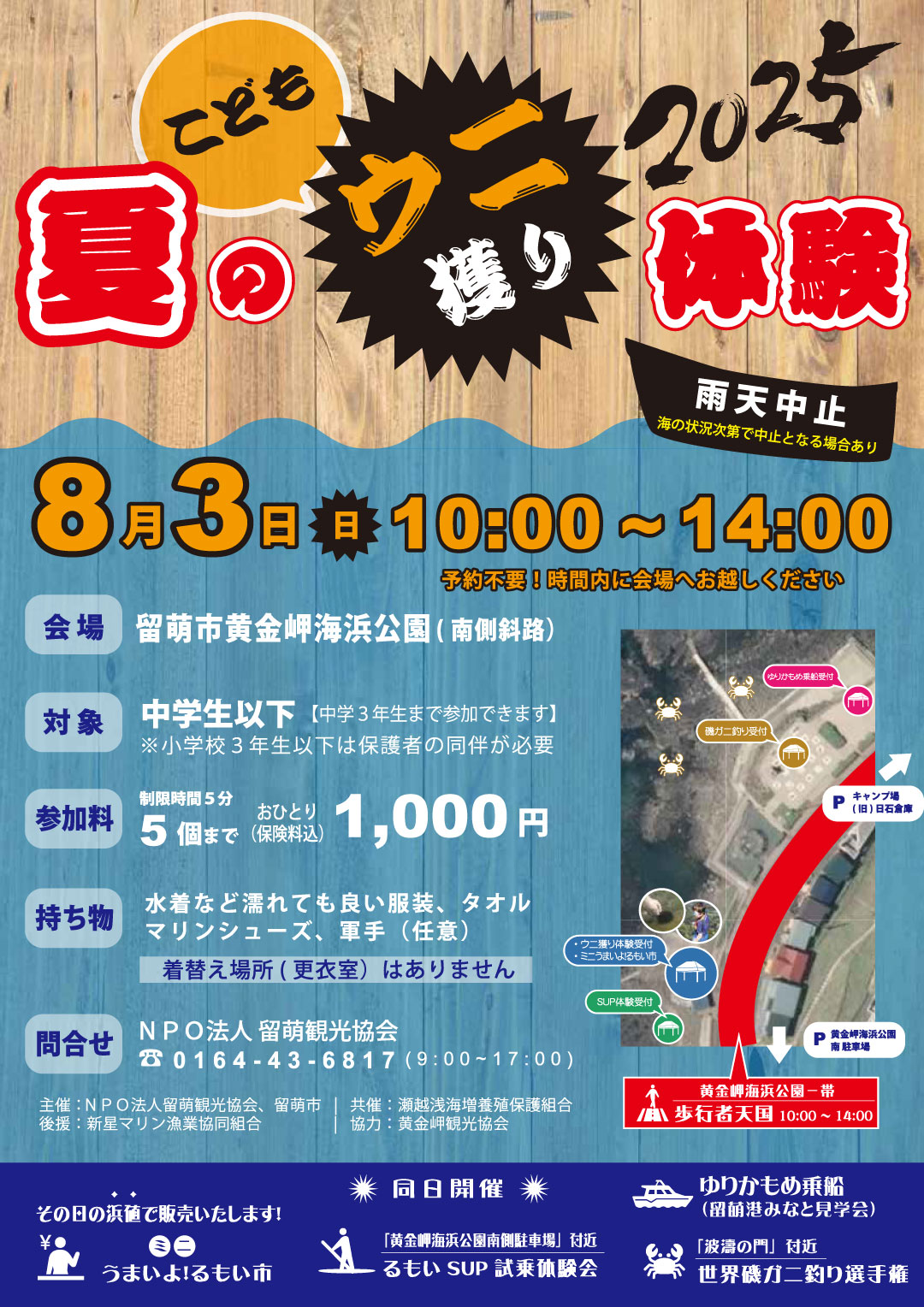 ・夏のウニ獲り体験、ミニうまいよ!るもい市